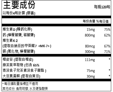 - 維生素K-2將礦物質與骨基質結構鏈結和維持正常的心血管健康,維生素K和D對骨骼鞏固尤關重要